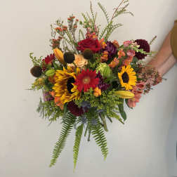 Price: $60.00Custom Peach and Orange Floral Arrangement